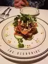 Nice touch with the relish tray while waiting for apps.The calamari , tuna poke and crudo very good and the crab cake was awesome. The caprese salad was very good. The raw bar looked great, wish I had the time to give it a try. The chicken fried lobster was good but I think a lighter breading would have served it better, and the grits were great. The house cab is wonderful, great berry hit. The servers were helpful, pleasant and attentive.