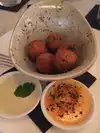 Hit the happy hour. Sat next to a couple who helped with the choices.. because of them I had the Moms Toast and kimchi balls and both were delicious. Then had one of each of the tacos. They needed some extra flavoring. Luckily they give you three sauces...