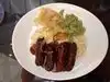 The meat is tender and well served but the meat with the hamburger was not well cooked as requested (rare) Very helpful waiter Very good beer However, we were placed right next to the door so there was a lot of draft.