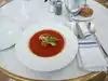 As my wife and I often do when visiting the Met, we had a lunch of thick and hearty soup--this time vegetable soup which was served very hot. The cost was $12 for both of us which, to me, was a bargain for New York City. It was rich with veggies, especially eggplant. Since it was a rainy day, the museum and the cafe were quite full, but we had no difficulty--the line moved well and we got a table immediately.