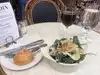 The white and green asparagus salad was Devine. The grilled salmon salad was artfully taste. The au jus roast beef on baguette would have been very good had they brought the horse radish and mustard before I was almost done. I had just remarked at how the beef was tender , the role was excellent and the jus was just right but al, seemed bland to the taste. The strawberry rhubarb tart was fabulous. Of course the scene of just budded green and flowered. trees, sunny tulips, and afternoon joggers, bikers and roller skiers passing the Egyptian obelisk was the best of the week. However the unfriendly waiter was very late with wine and Perrier condiments, and desert but quick with the check. Thus 10% tip.