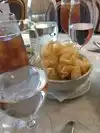 The plate of local artisan cheeses is what earns the review the 3rd star. The cheeses were divine, however served with one tiny bun cut into 3 slices. We requested additional bread which was provided but was inedibly hard. I like a crusty bread, but this was simply hard. The high tea was fine. Nothing special. I've had much better at much less expensive cafés. At $27 per person I expected to have some really great tea sandwiches. What was most disappointing, however, was the service. The server's phone rang while he was taking our order. It just kept ringing in his pocket. Despite asking, he never brought silverware for my daughter -- she eventually walked over to another table and grabbed a setting. No plates were ever cleared, despite giving all indication we were finished and even saying , "we've finished with these." When I paid the bill, the server, who had been very slow to do everything else, immediately grabbed the paid check off the table before we even got up. He never managed to clear a plate (and we'd ordered several things, each had three empty glasses, the entire table was covered, etc) but he sure moved fast to get payment. We spent more than $100 for a small cheese plate, one cocktail and high tea for two. While we did enjoy our time there, I expected better service and better food.