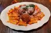 Located down a back alley near Pike Place Market, the Pink Door is a gem for the town of Seattle. The restaurant is much bigger on the inside than it seems from outside. The service was fantastic. We had a very knowledgeable and friendly waiter and we were well taken care of. We started off with a half carafe of their house red wine which was really nice. We had an order of arancini, which were very good, especially the sauce they were served with. My wife had the dish named after the restaurant which was their lasagna. I had the rigatoni and meatballs. Both were very good. The prices are not bad considering the location and the service. We wholeheartedly recommend The Pink Door for a wonderful meal.