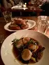 Great, attentive service for lunch. Outstanding lasagna. Fish of the day was halibut, cooked perfectly. Semolina biscuit slightly burnt on the bottom gave a carbony character. The mushrooms were not very uniform in their size and cut, lending a rubbery texture