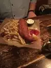Third visit to this unassuming bar, I love real ale and this suited. First time though at night and eating. Only had starters, Belgian fries and goat cheese fritters to share, we weren't really hungry. The fritters were to die for. This place is a great hang out if you just want one beer or you want to make a night of it. The staff are friendly and very knowledgeable. The only downside are the toilets, there's only 2 and communal, OK for the boys but not so the girls but hey when you gotta go you go, enjoy.