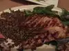 Service was fine (although I tend to agree with teh Yelp reviewer who said the waiters needed to smile at least once, but the rib-eye and filet were delicious.