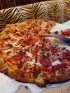 We were out of towners with teens. We searched Yelp, and the Yelpers raved about the pizza. When we arrived we definitely had the oldest (50's) people in this place in our party as well as the youngest (under 21). And the place was packed on a Thursday night with a trivia competition going on. No matter! The service was fantastic! The pizza was really excellent (we got 1/2 hungry surfer - a meat combo - and 1/2 cheese) and we are pizza snobs. A good time was had by all and a good meal. If you aren't in your twenties you are going to feel a bit out of place here, but then again, you are going to know a lot of trivia question answers! Kudos to the waiter who acted like we were a typical group and kept the lemonade refills coming until the food arrived, and to the nice young man who found gray haired mom a barstool. Next time we will dress hipper, but we will definitely come back. And it was just as good the next day too.