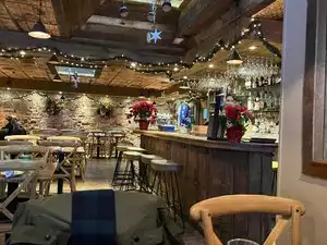 We stopped in for a quick app and a glass of wine...GO EARLY or be sure to make a reservation! It's very small and very busy! We got the last 2 stools at a shared table. The rest is sofa/ comfy seating. The views are beautiful! There is a small outdoor patio. You have to order at the bar if you are not in the "restaurant" section, which was fine. Food was actually quite good! We shared a cheese/ charcuterie plate, mac & cheese muffins and the beef sliders (which were AWESOME)! We asked if they could box the remaining cheese tray to take with us for the next day, and staff was super accommodating.... Bottom line though, go EARLY! We arrived at 5pm....!