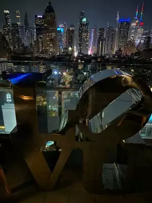 This spot has incredible views of NYC. The barstaff wasn't the most pleasant and the drinks were a bit expensive (a bottle of rose was $80) but this is NY. It was quite breezy so be sure to bring a jacket. They have an outdoor space with tables, booths, and a bar and then there is a DJ section inside to hang out and dance. You can coat check if you decide to stay inside. I loved my time there although the music system was having challenges and fading in and then going off. I would recommend.