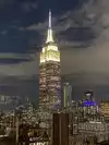 Short walk from the theater district. I think its in a hotel. Its dark and exciting as you go down hallways and up an elevator to the top where it opens up to OMG. It was nightime when we went. Everything lit up. Swanky place with a DJ on a Wednesday. Drinks were only 15 bucks and not watered down. Gorgeous views of Empire state building, alittle Chrysler building. Free to enter