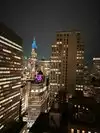 My friend and I were caught with a transportation delay so we decided to get some dinner and drinks. We walked a little bit and stumble to this lounge. I would have not expected on that block between 8th Avenue and 7th on 39th street. First you go in, walk around a dark wide hallway that leads to a freight elevator and a security. You get on the elevator and on the 30th floor you’ll see a host stand where they will sit you. The place is on the dark side and has a lot of little steps. There are spots for two and small groups. The view is pretty nice - rounded by buildings and the view of the ball drop. They have an open and unisex bathroom. The stalls are made of floor to ceiling door - thank god! Small bar. Prices are comparable to other high rise lounges. The staff wears black. Some of them are ok and some of them are down to earth. Food is actually good but minimal.