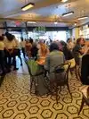 Very well-kept place, above average clientele, well-trained staff. I recommend it for an aperitif at the counter, you can order both drinks and something to nibble on. As a tourist the toilet was also very clean and well maintained
