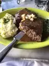 The wait staff were very friendly. The bread with garlic sauce is really good. My husband's prime rib was delicious. I ordered the meatloaf and unfortunately did not come out hot.