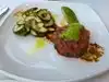 We visited here by accident after going on the Statue Cruise. But what a find! Yes, it is a little pricey, but well worth it. The surroundings are lovely, very light and clean, with indoor and outdoor seating. We felt very welcomed, despite looking a hot and sweaty state(!), and were taken to our seats. We were given iced water and bread. The service was quick and very polite, and we really enjoyed eating there. A fixed menu was available, but we went for individual dishes. Just be aware that the spaghetti bolognese, though tasty, does not taste like spaghetti bolognese in the UK. I had duck prosciutto salad, and have attached a photo. They do have a fixed price menu at lunch time you can choose from to keep the prices down.