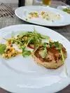 I had hoped for a better than mediocre meal. But that is what it was. Chicken salad on a plate with colored endive. And a strange tasting salad at that. Four different servers showed up and the table and all were very standoffish. Lovely view of the boats and harbor.