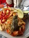 Great place so much to look at hanging off the walls and ceiling food was massive portions really good cocktail