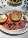 This quaint spot has a Michelin Star rating and is super cute inside. The old bar when u enter leads to a dark dining area that opens up to an adorable garden patio. Highly recommend. The waiters were friendly and the host Joey was exceptional! We got the caramelized grapefruit over ricotta cheese which was absolutely fantastic! The deviled eggs were also good and the bagel and Lox was perfect. I also had the Bloody Mary which was wonderfully spiced with horseradish! Limited outdoor seating out front so get there early if you desire an outside table. I would go back in a second!