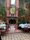 The outside garden has a fireplace and canopy which is cozy, classy, and romantic. Nice wine list and gourmet appetizers. Service is good without being intrusive. This is the perfect spot for a quiet, private conversation. More of a pre-dinner hangout but worth stopping by…BTW, Trump, who has never eaten there says it is the worst food in the city…You have to love that they put it in their advertising