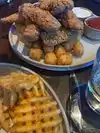 Standard bar food. GOOD Sliders, we ordered twice. Juicy, seasoned decent and fresh with a toasted buttered bun. The accompanying Tator Tots were lukewarm and disappointing. Not worth sending them back. Service is efficient but listless if you are not a regular then it becomes a bit more perky. The exception is the Angela Bassett doppelganger, who was friendly, very welcoming and personable, while remaining productive with our seating and other guests who came behind us. The Buffalo wings were coated and came room temp at best. You can tell they're pre-cooked with possibly a quick refry then maybe a light toss in sweetish sauce that soaked into the floured coating. This is why a hard fry without a floured coating is better, unless you fry the coated wings FRESH, which they did not do by a longshot! Additional Buffalo sauce will cost extra, which sucks because the sauce they toss in is soaked into the breaded chicken and come dry. A "sports" bar/pub, in particular, SHOULD BE providing unlimited condiments! The accompanying dressing is your choice of either flavorless Ranch or Blue Cheese with a few sparse pieces Celery and Carrot crudite. The drinks are NOT worth the price. If anything, maybe the "strong" Manhattan with Pig Whistle Bourbon at $16. The Apple Cider Mimosa, at best, ONLY should have been $7-9. The $11 price is robbery, especially when I told them a splash of Cider and the wait person stated, "Well, you won't get anymore Champagne, your glass will be a little over half full." Overall, this place can easily be a HARD pass!