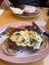 An authentic diner with the classic dishes - we got steaks egg Benedict and waffle with fruit and granola. There was a nice but a little lazy service, we were not offered filling on the coffee and we had to wait a long time to be allowed to pay even if there was no fill up.