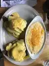 We sat in the porch area, which was covered and heated. The mac & cheese was insanely good. The pot pie was average. Service and atmosphere were both good. There were several well-behaved dogs, as it is a dog-friendly place. It was a very nice experience.