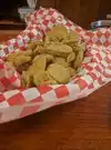 This will be a short review since my app has crashed 4 times. The chicken-fried steak was to die for along with the cream gravy it was sitting on. The mashed potatoes were real and lumpy just like I make them. Having the gravy to accompany the potatoes was another treat I got the fried pickles and they beat any fried pickle that I've had in recent memory. The breading stayed on yet they were still tart. In the mail I had the custard pie which was lightly spiced The salad was okay, it's nothing to write home about but the rest of the meal dwarfed the salad.