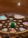 We did not score a reservation our first day entering Mario World. But we had early access the next day and were able to get a lunch reservation. The lines were long to enter to order our food. And the line to get seated was also long. It was chaotic inside. I had the Mushroom Soup which had a souvenir bowl—costing $19. My Tiramisu came out late. It looked like they ran out of Tiramisu and made a large batch—many of us were waiting for our dessert. My soup and dessert were quite pricey but delicious. It looked like the cafe was understaffed. I saw the same lady at the register also taking a turn bussing the tables—maybe they rotate positions. The atmosphere inside was very noisy.