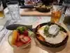 Sat outside and enjoyed good service and food. V relaxing. Menu was extensive and portions were v generous. We had pancakes, fruit and avocado and eggs. Salad was fresh with nice dressings.
