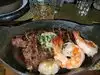 Amazing ambiance (DJ, good lighting, etc.), good service and great food! Sides and salads are worth sharing. Ask to be seated in the back where they have a fire show!
