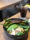 The food, the service and the laid back vibe in the heart of NYC was just what we needed after a long day of shopping and taking in the sights and sounds of NYC. Even though there are tons of good restaurants serving NYC specialties, we love this place. Everything about it just feels calming in the midst of pure chaos outside! I had the Mojo Chicken and my wife had the Squash Spagetti Bowl and they were both excellent. Highly recommend!