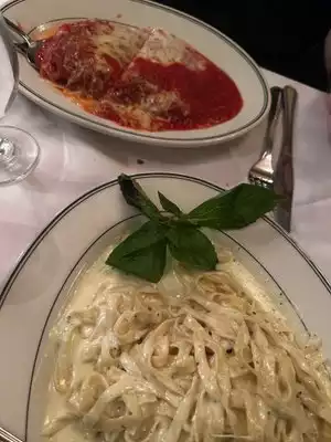 Good and service was AMAZING! We visited as a family of 4 during busy tourist season and while the restaurant was packed, we had made a reservation in advance and when we arrived 15 minutes early we were shown to a table right away. Our family enjoyed the fettuccine Alfredo and chicken Parmesan and we all agreed it was the best we’d ever had. Having 2 entrees was just the right amount of food (we have a preteen and teenager, so not small kiddos). Our server was fantastic and boy could he sing! We finished the meal with 3 desserts, which were also great. Start to finish we were in the restaurant about an hour and a $160 bill (2 entrees, 4 drinks (2 alcoholic) and 3 desserts). Highly recommend and get a reservation in advance!