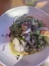 Topsail is one of the newer additions to San Diego's waterfront eatery & bar scene. Nestled on top of the Brigantine restaurant with the same shared entrance, Topsail starts off with a spiral staircase up, encased in a glass dome. The host stand is right at the top of the stairs; hostesses have always been very welcoming and friendly. There are lounge group seatings with fire pits all along the border of the place, but they go fast so make a reservation if you're going at peak times. There's also a full bar in the center with many seats, along with ample seating throughout. This is an outdoor place, so make sure you dress accordingly and bring a jacket if need. They have heaters and fire pits everywhere but the wind does flow freely through. It was lunchtime on a Saturday, but we were lucky enough to score one of the perimeter couch seating areas. The views are perfect from just about anywhere here, but our spot gave us views of the bay and the Star of India ship. This was my third time here and service was good, as usual. Topsail has a nice selection of beer & some signature cocktails, but the full bar is always ready to make your usual favorites. I always stick with my usual dirty Kettle martini when I go. We brought some visiting fiends this time and they got the Mai Tai & iced tea - the Mai Tai was tasty. For lunch, we ordered: Spanish Grilled Octopus, Pork Belly Banh Mi Bao, Chimichurri Skirt Steak, Alaskan Halibut fish & Chips, Wagyu Burger, and the Grilled Salmon Salad. The grilled octopus was decorous and tender. The banh mi baos were pretty good, but lack the full banh mi flavors and needed more acidity that pickled carrots & daikon provides in an actual Vietnamese banh mi. The skirt steak was okay, but not the medium-rare specified and the chimichurri wasn't bad. Burger and fries were good. The grilled salmon salad was filling, but the fish wasn't seasoned much and the dressing was bland. The fish & chips are my favorite, well battered and fried, chips nice and crispy. The food here is decent, but the drinks and views more than make up for it. Prices are a little on the higher side, but it's the ambiance and views that you're also paying for. All in all, a good waterfront place to lunch or lounge with drinks while catching up with friends. This was my third time here and there will be more to come.
