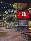 Super relaxed place, trendy fixtures and features, friendly staff serving, good beers and life music what else can you wish for ? Every day different kind of food trucks enter the place, so i'm told so every visit it is a surprise what is on the menu. They have a small ferris wheel, many tables benches or the back of a truck to sit down. Both in and outside seating available, good place to visit prior or after going to one of the games.