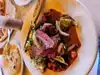 Very fresh, big variety of food, delicious and beautiful. Very funny waiters. Good to sit outside as there is a tent and ventilation.