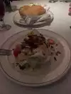The decorations and ambiance of this restaurant immediately grabs your attention. The hot loaf of bread gets you started. The piano playing duet gets you into the right vibe. The clam chowder has a crisp texture. The salmon bernaise was very good, very large and had shrimp on top and parmesan mashed potatoes below. The garlic spinach was ok. The South African lobster tail stuffed with crab meat was excellent. But desserts really stand out. I have never seen a bag of chocolates filled with fruit and pound cake chunks. See the photos of it before and after it is broken up for serving. Our waiter was quite attentive.