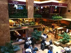 I had a business meeting here in November 2015. I got a chocolate milkshake at the ice cream station. Although there was food nearby, I was not hungry enough to eat. The Trump Café was adequate for a 30-minute business meeting. There was a waterfall with pink marble behind it. The acoustics were OK although the waterfall made some noise. I just missed seeing Trump himself who had been in the lobby two hours before with an entourage of secret service agents.