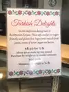 I have been a fan of Turkish Delights since I was a child I have tried various versions from French and American styles but never an authentic Turkish Delight I have to say it was yummy! Highly recommend to anyone the service was fast and the people were friendly they have drinks and food items too but I only tried the Turkish Delights so I have to recommend those. Though I don't recommend trying to take Turkish Delights on a plane I did and because the altitude/pressure changes they didn't look like they did before I got on the plane.