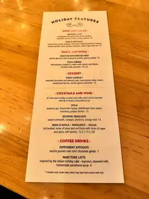 I have eaten here in the past and always order pizza, usually the tutti Bella, which has sausage, mushrooms and onions on top of marinara sauce and cheese. The pizza come in either a 10 or 13 inch size and are thin crust. The crust is fairly chewy but very good. The pizzas are cooked in wood fired ovens. The menu has a number of salads as well as other Italian dishes, spaghetti , gnocchi etc. Beer and wine are available. There are seasonal specialty dishes my wife had the fennel and cauliflower pizza and added Italian sausage to it also very good. A good place for families. To keep the grandchildren occupied while waiting for the food they provided waxed strings that could be formed into many different shapes.