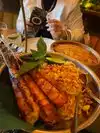 Phenomenal food (duck tower, lobster roll,prawn pad tai, pistachio soufflé) with attentive and courteous service. Carmella was our server and was knowledgeable about all the menu items. Must make a reservation as the restaurant gets booked up early. Although crowded noise level was tolerable.