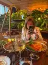 I saw a tiktok about this place and its feast menu for 2. It looked too good to be true but I decided to risk it. I called to make a res and also ask about substituting for any shrimp dish. I would not have been surprised if no substitutions were allowed but the hostess cheerfully advised that they do allow subs. Great! Made the res. We were seated fairly promptly following our arrival. The view over Columbus Circle was beautiful and the restaurant itself is beautifully appointed, def good for a date night. Our wonderful waitress, Denisa from Albania, was like the hostess of a party where we were the honored guests. We ordered the feast menu for 2 and also ordered 2 souffles. We had: Tableside-prepared papaya salad; Appetizer platter: crab salad puffs, sashimi, lobster spring rolls, chicken satay and pork rolls; Mains: marinated steak, red curry sea bass, spicy chicken hash, sticky rice served in bamboo, wilted pea shoots; Desserts: mango sticky rice, ube creme caramel and our two souffles (we had chocolate w mocha glaze and pistachio w pandan glaze). There was not a bad dish. Everything was thoughtfully prepared and beautifully plated. We enjoyed the flavorful cocktails, beautiful darkish setting and Denisa's great service, as well. The people at the tables on each side of us were return customers, which says a lot. What a great night. We will definitely return. Strongly recommend.