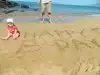 Walked over to local place for evening drinks. Many families and groups eating inside and outdoor patio. Sat at sticky wooden picnic table with bench. Rushed server.