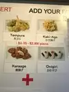 Quite a new experience of udon bar for us, and itโs great. The idea is simple, you choose the size, flavor of the udon you want at the bar, and the guy pours it to you in 10 secs. Then you pick up any side dish you want and head to the pay station. The thick cut udon noodle turned out to be great. The texture is perfect, tender with a little chewy, just the way a good udon should be. The broth was excellent, full of flavor yet subtle and not too salty. My wife ordered their curry udon and the curry was very nice. Unlike the over sweetened Japanese curry sauce sold in super markets, this curry sauce got quite a kick, which comes just right for the udon noodle. The portion is pretty big. I hardly finished my medium bowl, and my 8-yo son could only finish half of his small bowl. It would be great if they can offer a kid-size. The udon noodle comes with the green onion, seaweed. Then there are other side dishes like various tempura, fried chicken to order. Though the udon noodle bowl itself is at great price, the side dish is a little overpriced.