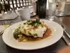 It offered a buffet or menu option. We ordered the mushroom omlet, and huebos rancheros and everyone was satisfied with their meal. Server was polite and it was quiet enough to carry a conversation/meeting.