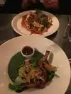 We just walked in on a Wednesday evening and told there were no tables for half an hour . As we turned to go they said we could sit at the bar - which we did. This was indeed a very cheerful and comfortable place to sit. It also provided us with some "cocktail theatre". We shared the crab cake which was delicious. My companion had the Salmon and I had the Thai Green Curry. Both were very good. This was accompanied by a tasty bottle of Sauvignon Blanc. A great atmosphere but not so noisy you could not hear yourself (we had a lot to catch up on!)
