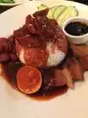 One of the best Thai restaurants in NYC. It’s known for consistently having delicious, fresh Thai food. Every time I come to NYC, I always try to go to Up Thai. There’s usually a wait but you could also call ahead or make a reservation in advance. There’s a small waiting area in the front and there’s only indoor seating. The food is the star of the show, and I’d recommend coming in for lunch to avail of the lunch specials (only around $13!). I had a pork dish with this gravy on top of a mound of white rice that was accompanied by vegetable soup and two pieces of a chive pancake. The pancake was cold but the soup was warm and comforting. My favorite part was the Chinese sausage (and I’m not usually a fan of Chinese sausage). If you’re in the mood for something special, the clay pot fried rice is to die for. Note that there’s seafood and it’s such a warm, wholesome meal. There’s also alcoholic Thai tea and other cocktails. This is a good spot for a date night or to hang with a small group of friends. The decor is really nice. There’s a bathroom on the main level as well as additional ones down the stairs. The service is friendly and they take away your plates very quickly. Overall it’s a nice restaurant with delicious food options and great lunch specials.