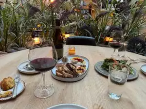 We came here for drinks and live music on a Tuesday night. The atmosphere is awesome, and the singer was amazing. The wine was great but expensive. The menu didn't blow me away so we ate elsewhere. We stayed for about 45 minutes.