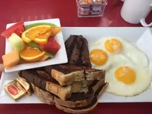 Because this place was owned as part of a group of other places in Hillcrest, (Hillcrest Brewing Company being one of them which was amazing) we wanted to give it a go for breakfast. When we arrived it was reasonably busy but we didn't have to wait. They were in the process of putting up decorations for Memorial Day celebrations but that didn't interfere with the food service. We ordered the steak and eggs which came with toast and ordered extra fruit, and the simple breakfast (3 eggs, hash browns, rye toast and added grilled ham). The steak was cooked perfectly, as were the eggs - sunny side up. The waitress was so friendly and chatty and always aware if you needed your coffee topped up. We can't fault the service or the food and it's a shame we didn't eat here during an evening as looked like a very fun and lively place. Worth noting that from 9am-11am it looked liked they have breakfast specials of a slightly reduced $5.99 menu but excellent prices for which we just missed. They also have happy hour specials from 3-6pm as we walked past there one day around that time and the place was packed.