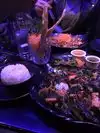 We were staying at an apartment only 3 blocks away, so we walked over here for dinner on Friday, December 29, 2023. Arrived about 6 PM and we were seated immediately even though the place was nearly full. This restaurant is very decorative and lighted only by the hundreds of small LED lights, and the centerpiece... a 50 foot paper dragon hanging from the ceiling that snakes throughout the restaurant and is constantly changing colors. Walking through here gives one a feeling they are tripping on some psychedelic. The front room is a bar and some seating, then a narrow hallway goes back to the main dining room where we were seated. I started with a cocktail called the Hidden Dragon -which is a Thai style Old Fashioned. My wife and I shared a delicious app plate of Edamame, good but rather plain. She ordered the Spicy Noodle Kec-Mao. I had the Pla-Abb which is marinated and grilled Tilapia served in a fancy tall tiered pottery dish. Both plates were deliciously spicy. Mine made me sweat, which was an indication of my enjoyment as well. The servers wear iPads hanging around their necks or waists, and they stand erect and motionless among the tables when not taking orders or serving food. It is a little strange, but that must be what they are told to do. It was a little too dark here for dining, romantic but I like to see my food. We enjoy Thai food and this is a pretty good one.