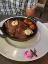 The decor and setting is very nice and very fitting of a high end restaurant . However the menu is very limited and most people will struggle to choose something . We chose the coq au van pie ?? This was so far away from the classic French recipe on looks and taste that we were left dumbfounded . It was basically a chicken soup sauce with chunks of chicken .in a vol au vent . With no sides included . We had to order Dauphinoise potatoes which we had to return for being over cooked but it was basically sliced Sauté potatoes and again Dauphinoise in name alone and at a crazy price . The Beef bourguignon pie was quite tasty but I think I had about 4 chunks of beef . They really need to go back to the drawing board with the whole menu . I’m a chef lecturer by trade and won’t be ordering from that menu again . Service lady was very efficient and friendly .