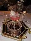 We made reservations for late evening and had a table off to the side for 2 all by ourselves. The restaurant is so beautiful with a huge flowered sphere structure from ceiling revolving constantly. Decorations were lovely. I enjoyed a French Poodle drink with crab coquettes and my husband had a Bora Bora drink with Creme brûlée beignets. Our French waiter was so attentive and very nice. I just was surprised with rough paper napkins. I would have preferred cloth napkins for the evening,